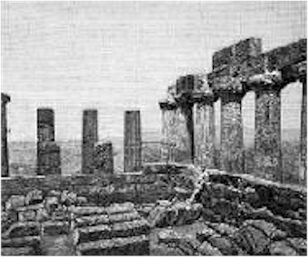 | I due templi alla fine della parte orientale delle mura, che senza ragione vennero qualificati come i simulacri di Giunone Lacina o Lucina e della Concordia, sono sopravvissuti per un miracolo alle tempeste alle quali Acragas e Agrigento dovettero soccombere, mentre i templi di Ercole, di Giove, di Castore e Polluce e di Vulcano eretti nella stessa fila, ma più verso la parte occidentale, oggi non sono altro che masse informi di rovine. | ||||||||||||||||||||||||||||||||||||