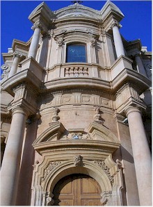 | Proseguendo lungo il principale Corso Vittorio Emanuele troviamo la Chiesa di San Carlo Borromeo (1730) e il Collegio dei Gesuiti (1736-1746), opere rispettivamente di Gagliardi e di Francesco Maria Sortino, suo amico e collaboratore. I Gesuiti furono fra i primi ad accaparrarsi le aree migliori della nascente città. La Chiesa, con le sue ripetute concavità, si inserisce armonicamente nel corpo del Convento, ispirandosi il tutto ai modelli dell'architettura civile. L'altare maggiore è impreziosito da una policromia di marmi bianchi e rossi e dal tabernacolo in legno dorato di Basile. | ||||||||||||||||||||||||||||||||||||