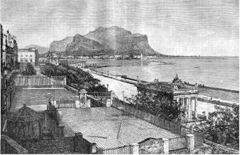 Al viaggiatore che arriva a Palermo per la via di mare, la città appare quasi come una bella distesa a terra, con i piedi verso le acque e la testa appoggiata contro le montagne. A destra appare il monte Pellegrino, rossastro, arido, selvaggio, tale che lo si crederebbe tagliato a colpi di picca. E bellissimo riesce il panorama anche a chi lo contempli dall'anzidetto monte e può