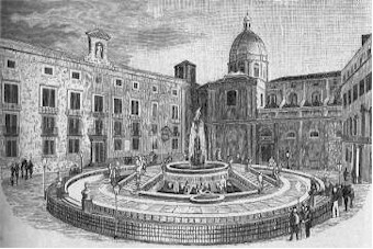 andando verso il mare, si lascia sulla destra la piazza Pretoria decorata