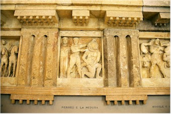 mentovate metope di Selinunte, provenienti da tre templi e qui collocate come erano