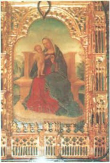 Questo dipinto raffigura la Madonna in maestà con il bambino Gesù. La