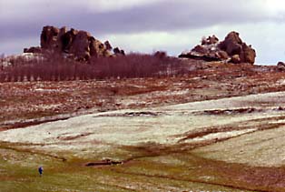 | Il nostro viaggio volge ormai alla fine: oltrepassato il secolare Bosco di Malabotta, si giunge, nei dintorni di Montalbano Elicona, alle Rocche dellArgimusco, un luogo particolarmente incantato e ricco di mistero. Si tratta di un vasto pianoro erboso circondato da boschi, sul quale aleggia la presenza inquietante di enormi monoliti di pietra arenaria che si ergono dal terreno. Su questi macigni rocciosi, sotto le giuste angolazioni, si può facilmente scorgere ora il dolce profilo di una Madonna, ora il fiero aspetto di unaquila ad ali spiegate, quasi insinuando nellattonito osservatore il dubbio che una mano sapiente - e non lincessante lavorio del tempo - li abbia modellati. | ||||||||||||||||||||||||||||||||||||