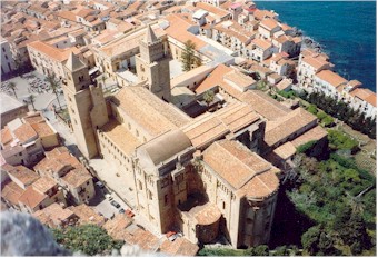 alla pagina, la Cattedrale di Cefalù, dal carattere di fortezza,