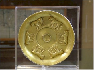 d'oro, una delle quali, con fregio di tori, è oggi esposta al British Museum di Londra, e