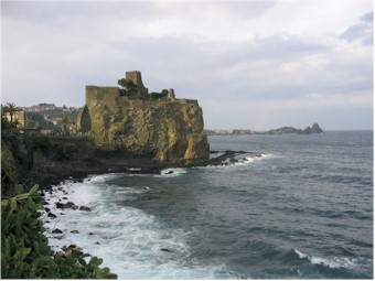 possono scorgere tre rupi sporgenti nel mare, dette Scogli dei Ciclopi, che secondo la