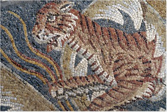 La villa romana di Patti marina, scoperta nel 1973 in seguito ai lavori per la costruzione di un viadotto dell'autostrada Messina - Palermo, il cui percorso fu deviato proprio in relazione all'entità della scoperta archeologica, copre circa 20000 mq e si sviluppa, così come il coevo complesso del Tellaro, su tre nuclei centrali posti attorno a un peristilio, questa volta rettangolare, di circa 33 metri per 25. L'abbandono della villa fu probabilmente dovuto a un sisma, come evidenziò la modalità di posizionamento dei materiali di caduta delle strutture murarie e l'inclinazione pavimentale. A Sud del portico è stato possibile ricostruire una sala triabsidata, in cui ogni abside era probabilmente ricoperta da semicupole che si addossavano ad un ambiente centrale con volta a crociera: tale struttura riavvicina l'opera all'organizzazione architettonica delle ville romane della provincia gallica, iberica e soprattutto africana. Il pavimento del portico del peristilio, così come gli ambienti a est e ovest del colonnato, è ricoperto da mosaici policromi con motivi geometrici. Nella sala triabsidata cerchi e mandorle delimitano spazi ottagonali all'interno dei quali sono poste sagome di animali domestici e fiere. Anche in questo caso, iconograficamente, è immediato il riferimento all'ambito africano settentrionale. Interessante è il succedersi, a nord-est del peristilio, degli ambienti termali appartenenti al terzo nucleo della villa: in essi sono distinguibili le vasche a tenuta d'acqua, i pavimenti riscaldati mediante un sistema di suspensurae, ovvero di pilastrini in mattoni circolari che sorreggevano la pavimentazione permettendo la circolazione dei gas di combustione e dell'aria utile a riscaldare gli ambienti. Indizio degno di attenzione è stato il rinvenimento, al di sotto di questo complesso livello del IV-V sec. d.C., di fondazioni di strutture murarie databili tra II e III sec. d.C., anch'esse con pavimentazione policroma di mosaici con motivi geometrici: tali resti dovrebbero far parte di un precedente complesso edilizio, più semplice, abbattuto per far luogo alla sontuosa abitazione suburbana tardoimperiale.