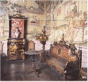 nome dalle sete dipinte e ricamate poste alle pareti,